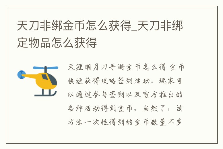 天刀非綁金幣怎么獲得_天刀非綁定物品怎么獲得