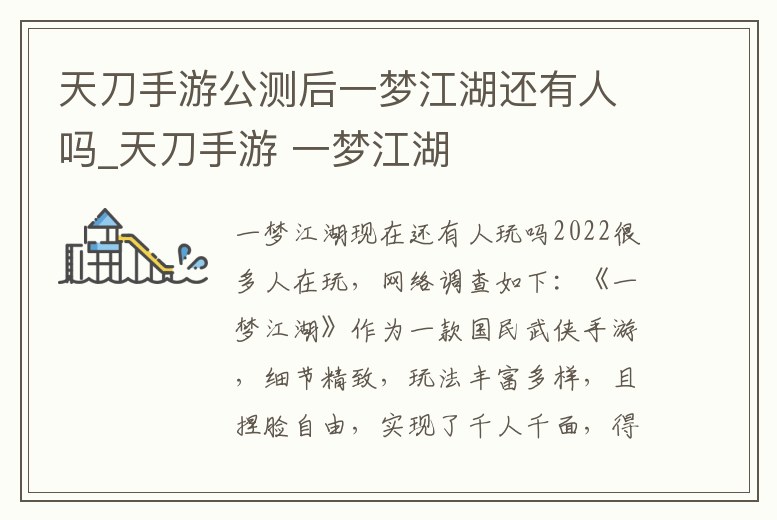 一夢江湖現(xiàn)在還有人玩嗎2022