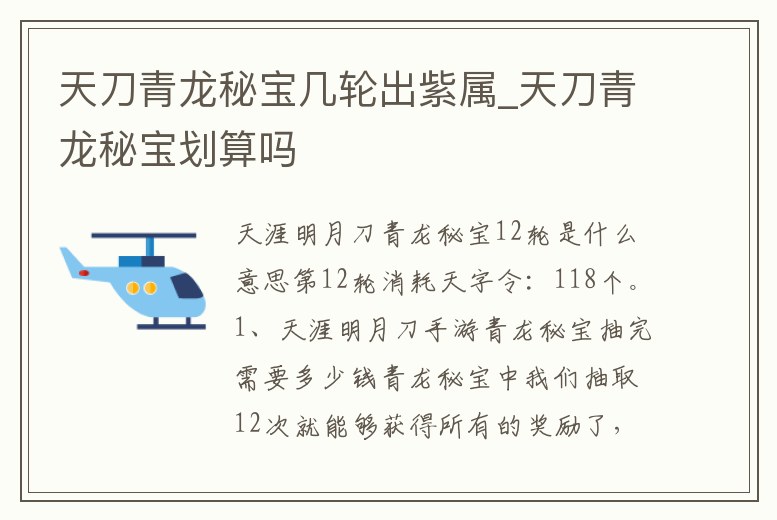 天刀青龍秘寶幾輪出紫屬_天刀青龍秘寶劃算嗎