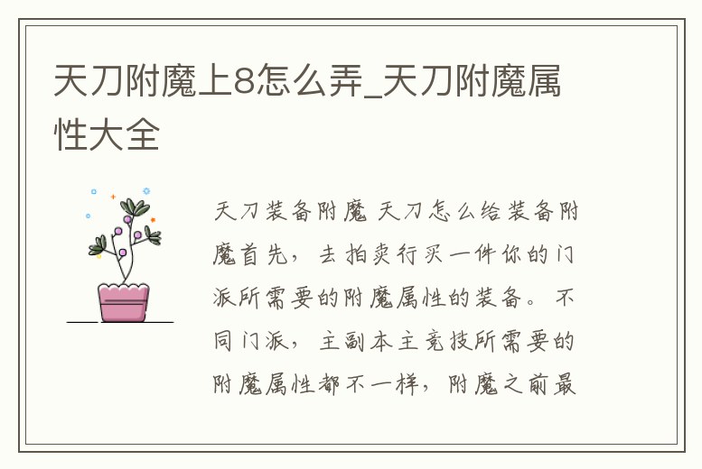 天刀附魔上8怎么弄_天刀附魔屬性大全