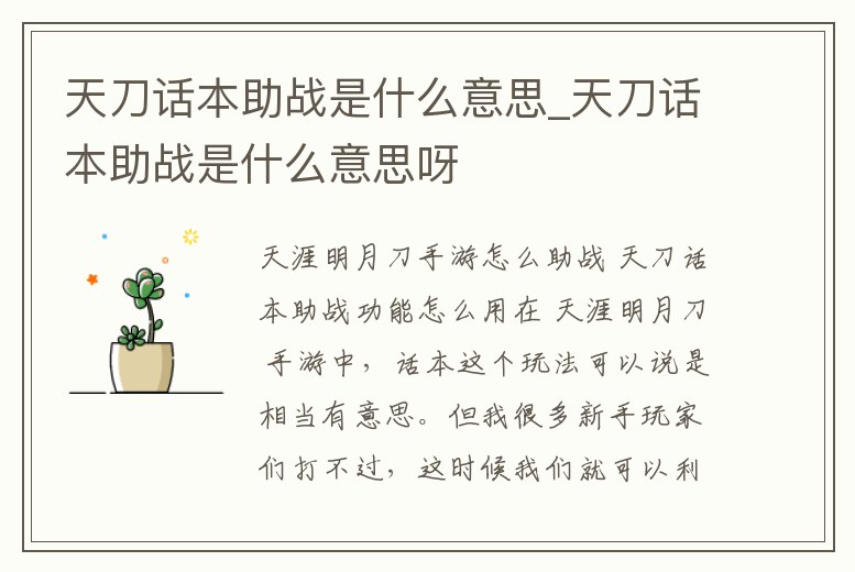 天刀話本助戰是什么意思_天刀話本助戰是什么意思呀