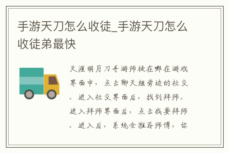 手游天刀怎么收徒_手游天刀怎么收徒弟最快