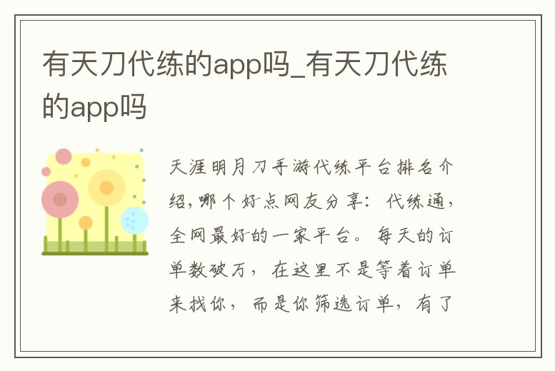 有天刀代練的app嗎_有天刀代練的app嗎