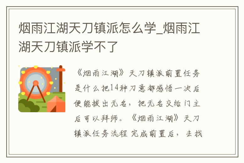 煙雨江湖天刀鎮派怎么學_煙雨江湖天刀鎮派學不了