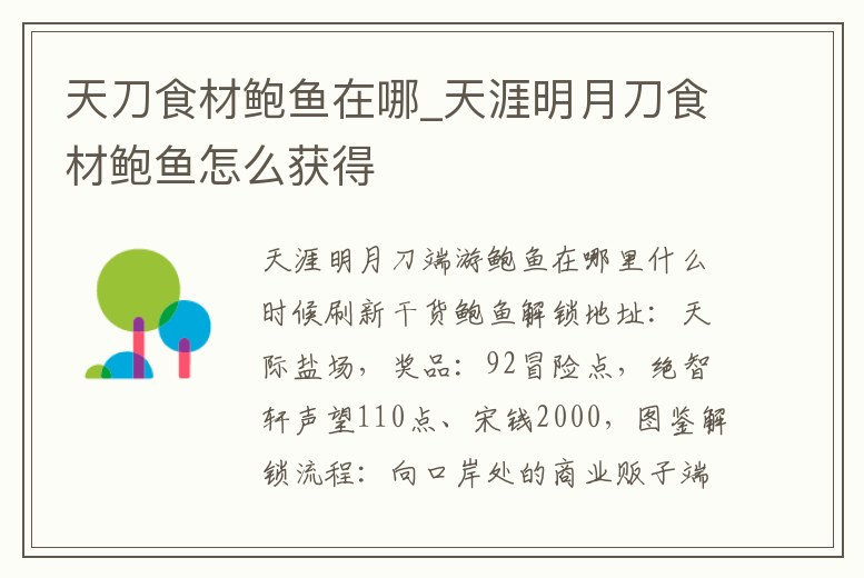 天刀食材鮑魚在哪_天涯明月刀食材鮑魚怎么獲得