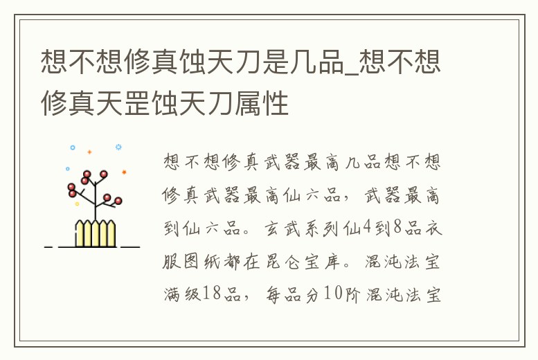 - 想不想修真蝕天刀是幾品_想不想修真天罡蝕天刀屬性