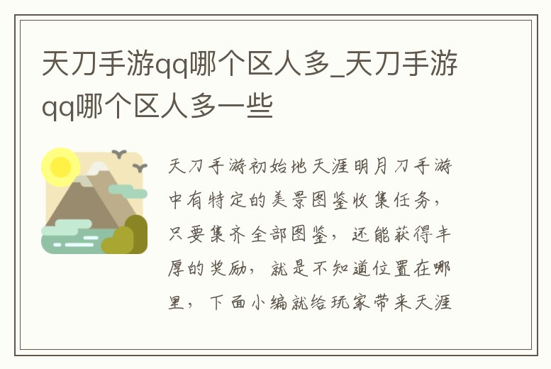 天刀手游qq哪個區人多_天刀手游qq哪個區人多一些