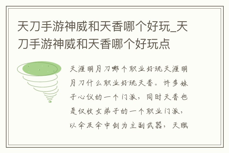天刀手游神威和天香哪個好玩_天刀手游神威和天香哪個好玩點