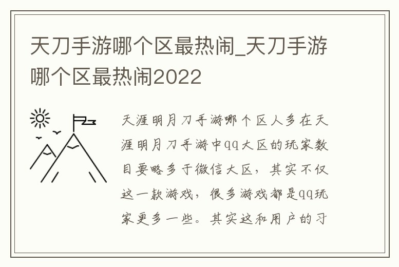 8、天涯明月刀哪幾個區,哪幾個服務器人最多?人氣最旺