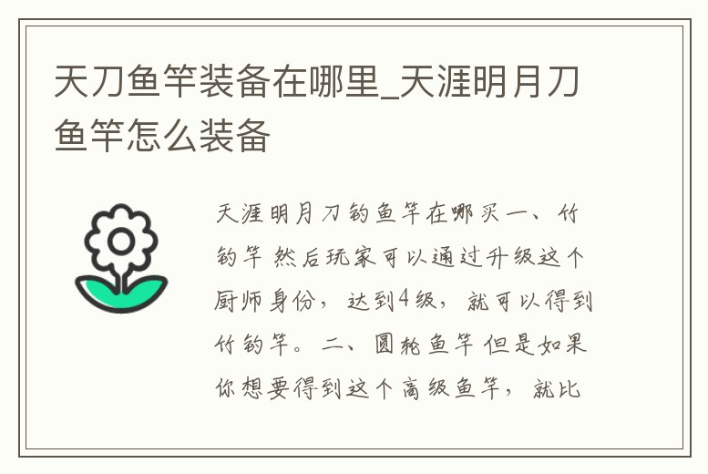 天刀魚竿裝備在哪里_天涯明月刀魚竿怎么裝備
