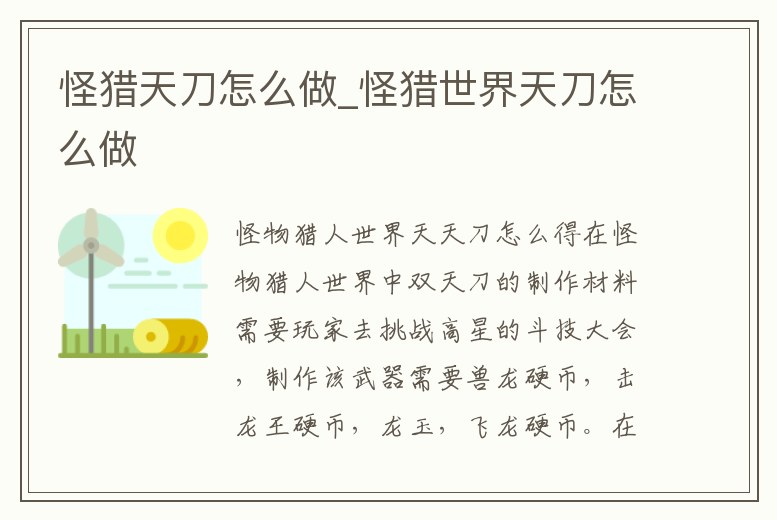 怪獵天刀怎么做_怪獵世界天刀怎么做
