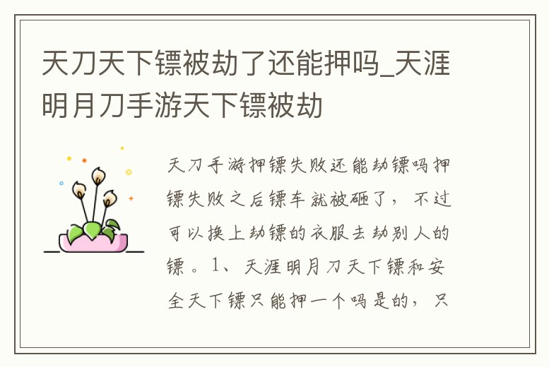 天刀天下鏢被劫了還能押嗎_天涯明月刀手游天下鏢被劫