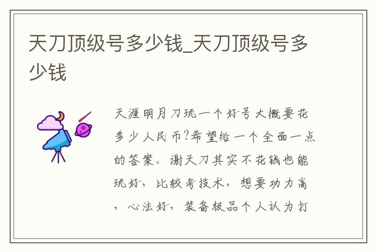 天刀頂級號多少錢_天刀頂級號多少錢