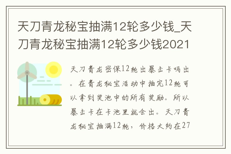 天刀青龍秘寶抽滿12輪多少錢_天刀青龍秘寶抽滿12輪多少錢2021