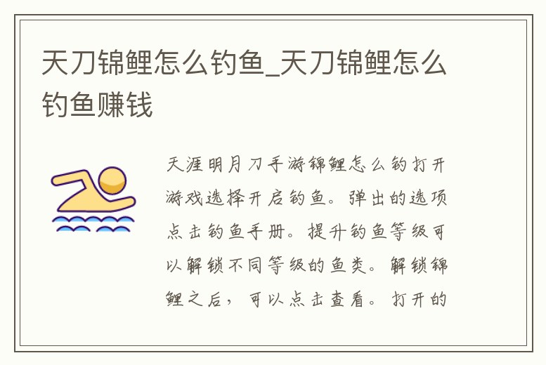 天刀錦鯉怎么釣魚_天刀錦鯉怎么釣魚賺錢