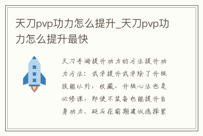 天刀pvp功力怎么提升_天刀pvp功力怎么提升最快