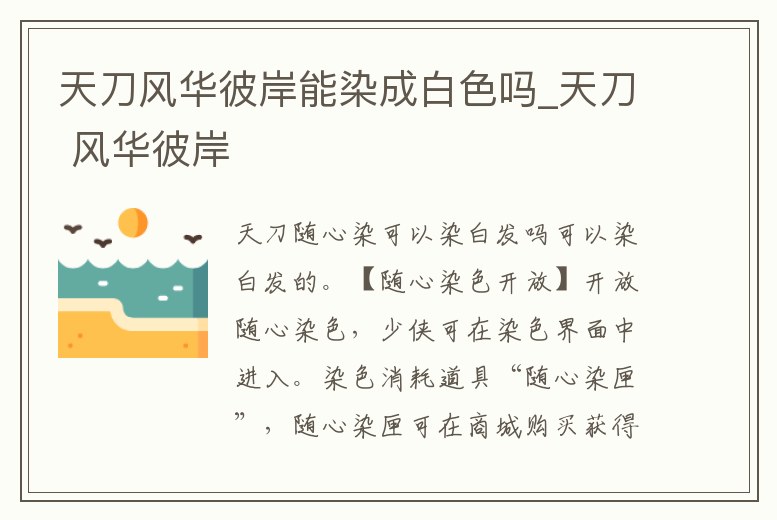 天刀風華彼岸能染成白色嗎_天刀 風華彼岸