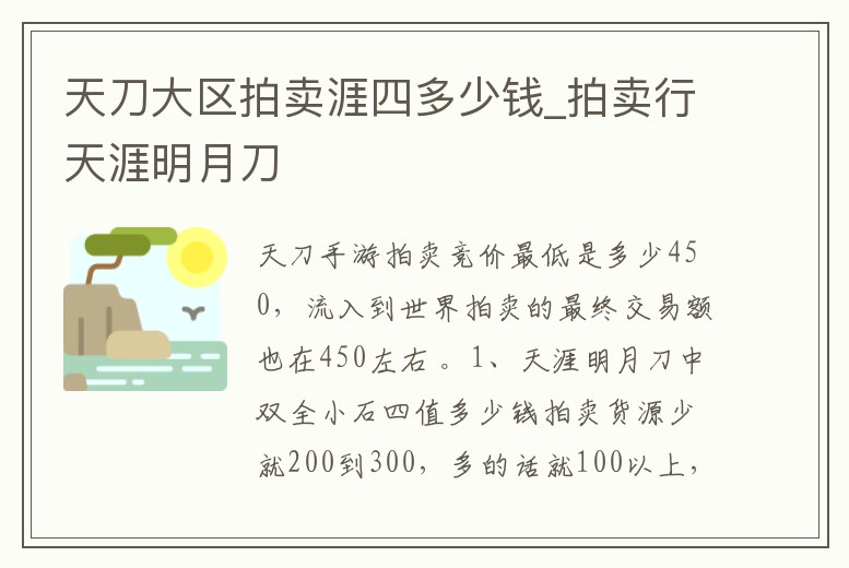 天刀大區(qū)拍賣涯四多少錢_拍賣行天涯明月刀