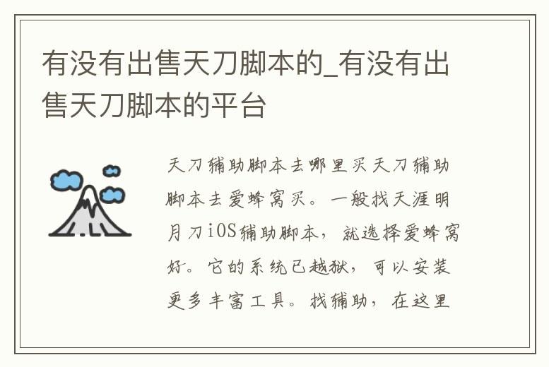 有沒有出售天刀腳本的_有沒有出售天刀腳本的平臺