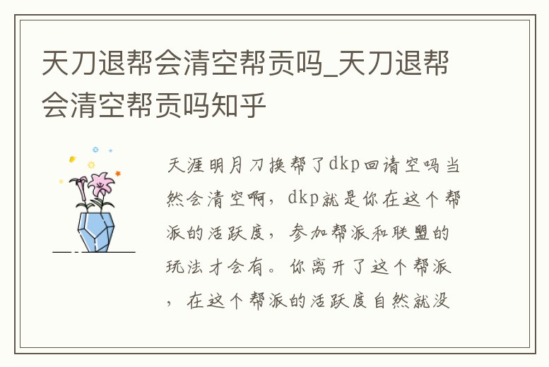天刀退幫會清空幫貢嗎_天刀退幫會清空幫貢嗎知乎