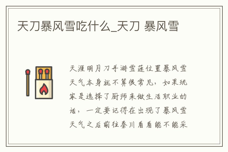 天刀暴風(fēng)雪吃什么_天刀 暴風(fēng)雪