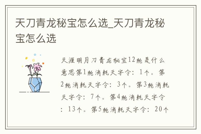 6、天刀ol青龍秘寶抽12輪花多少錢 青龍秘寶12輪需多少天字令