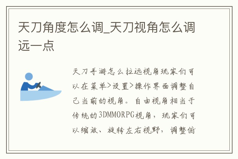 天刀角度怎么調_天刀視角怎么調遠一點