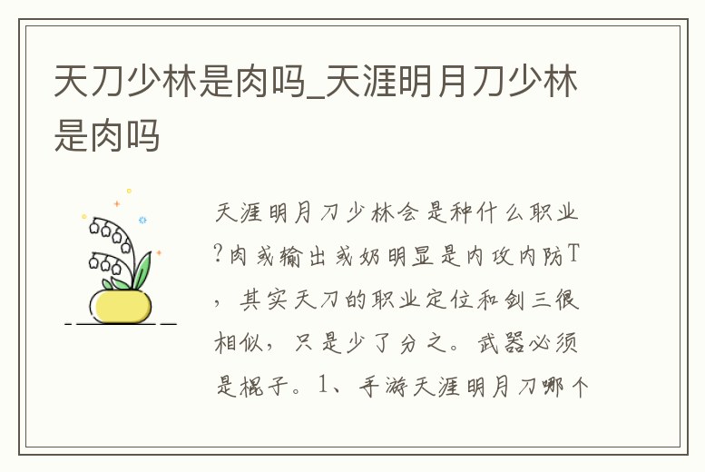 天刀少林是肉嗎_天涯明月刀少林是肉嗎