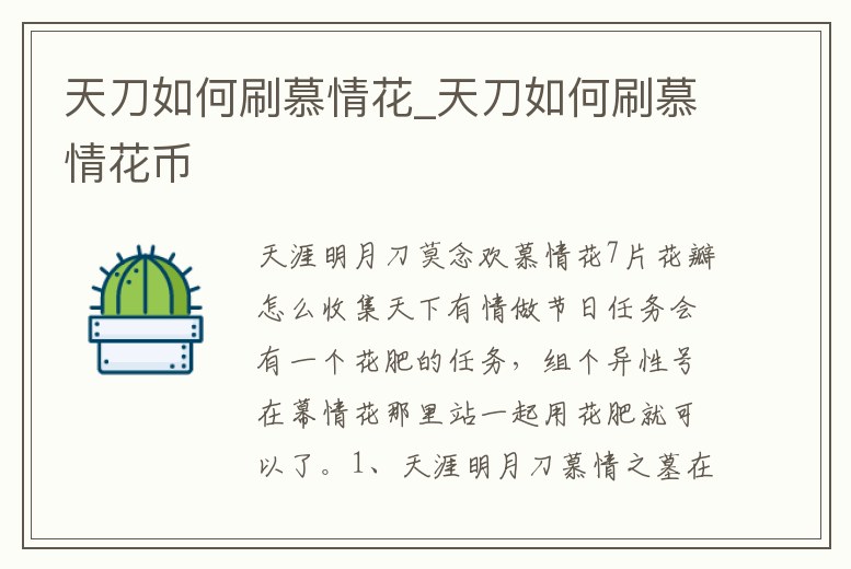 天刀如何刷慕情花_天刀如何刷慕情花幣