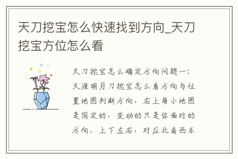 - 天刀挖寶怎么快速找到方向_天刀挖寶方位怎么看