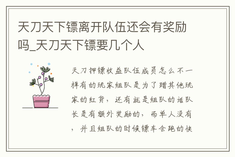 天刀天下鏢離開隊(duì)伍還會有獎(jiǎng)勵(lì)嗎_天刀天下鏢要幾個(gè)人