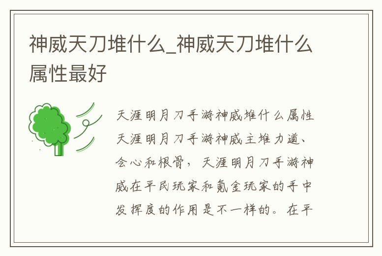 神威天刀堆什么_神威天刀堆什么屬性最好