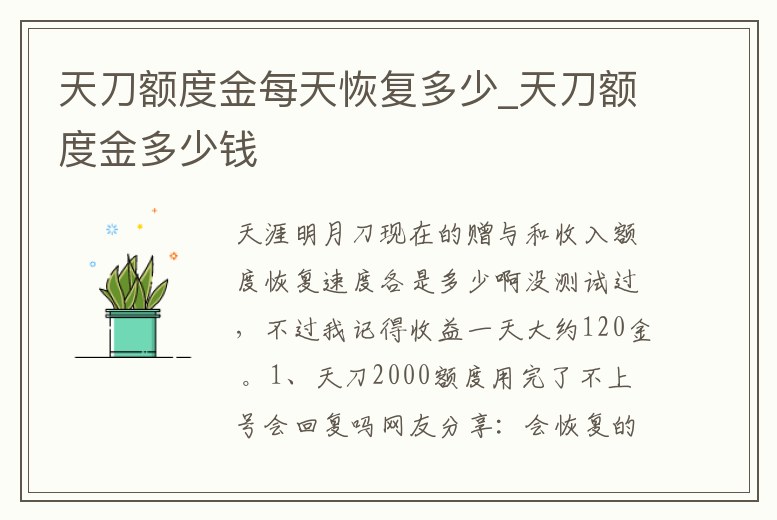 天刀額度金每天恢復多少_天刀額度金多少錢