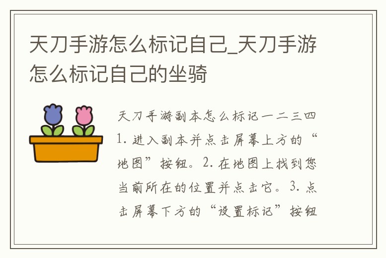 天刀手游怎么標(biāo)記自己_天刀手游怎么標(biāo)記自己的坐騎
