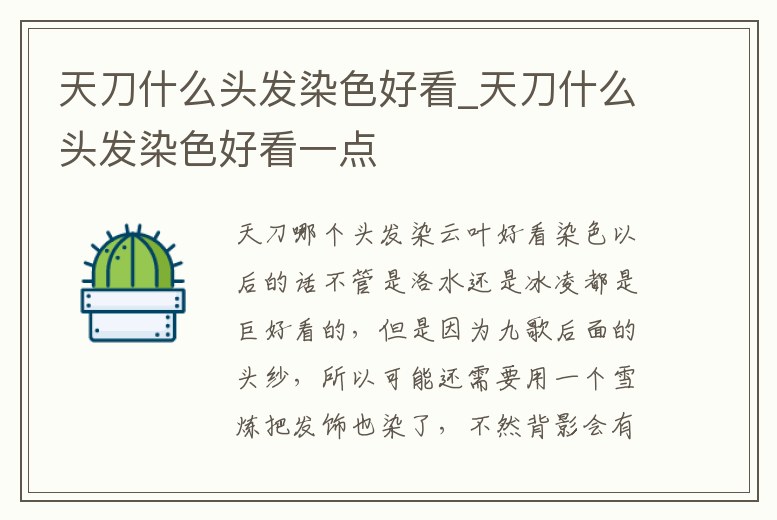 天刀什么頭發染色好看_天刀什么頭發染色好看一點