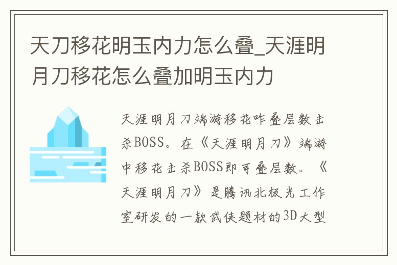 天刀移花明玉內(nèi)力怎么疊_天涯明月刀移花怎么疊加明玉內(nèi)力