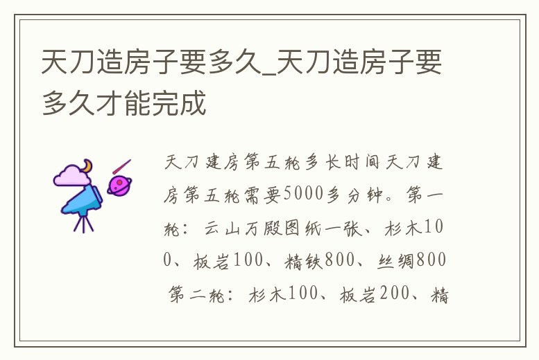天刀造房子要多久_天刀造房子要多久才能完成