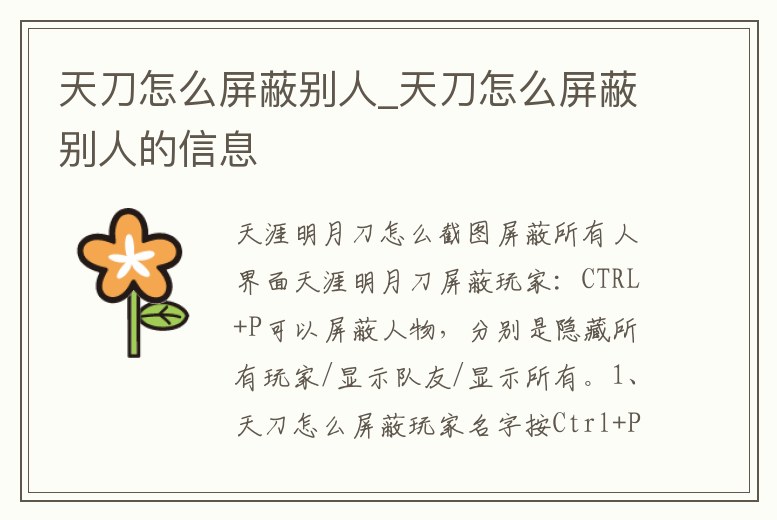 天刀怎么屏蔽別人_天刀怎么屏蔽別人的信息