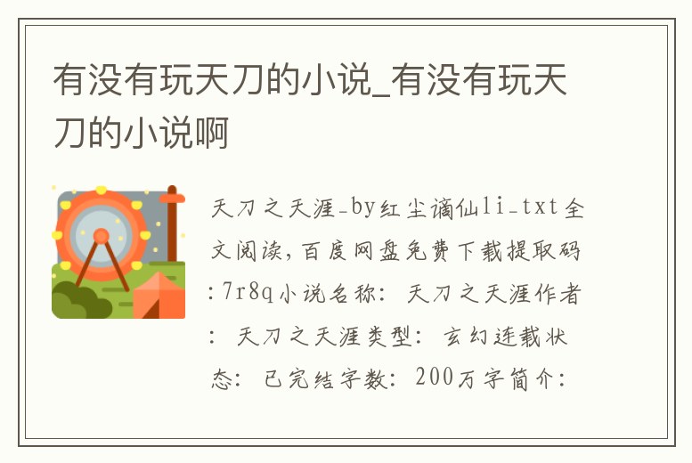 有沒有玩天刀的小說_有沒有玩天刀的小說啊