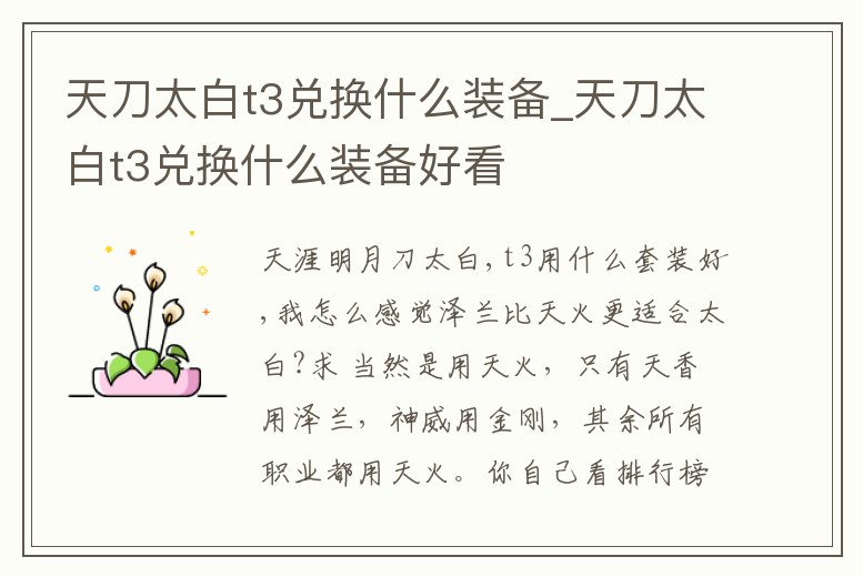 天涯明月刀太白,t3用什么套裝好,我怎么感覺澤蘭比天火更適合太白?求
