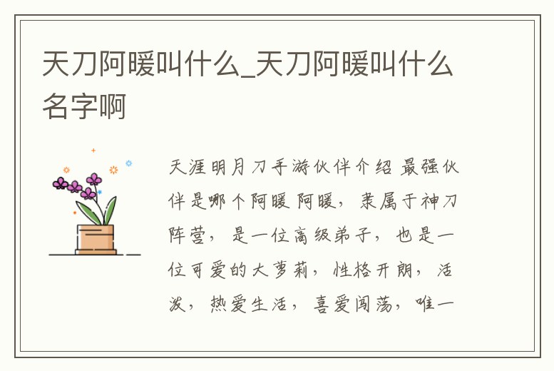 天刀阿暖叫什么_天刀阿暖叫什么名字啊