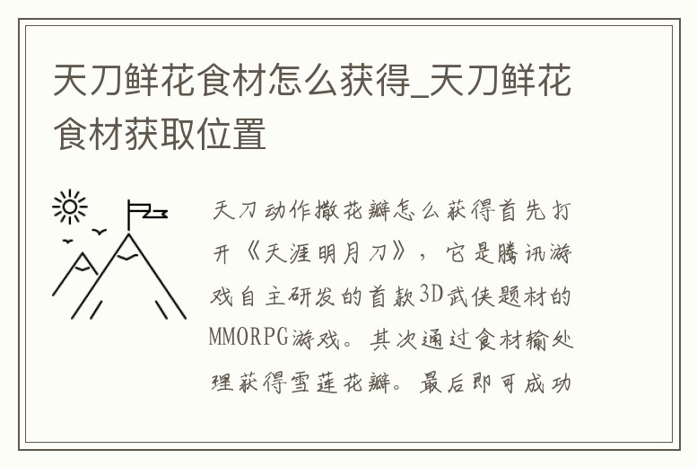 天刀鮮花食材怎么獲得_天刀鮮花食材獲取位置