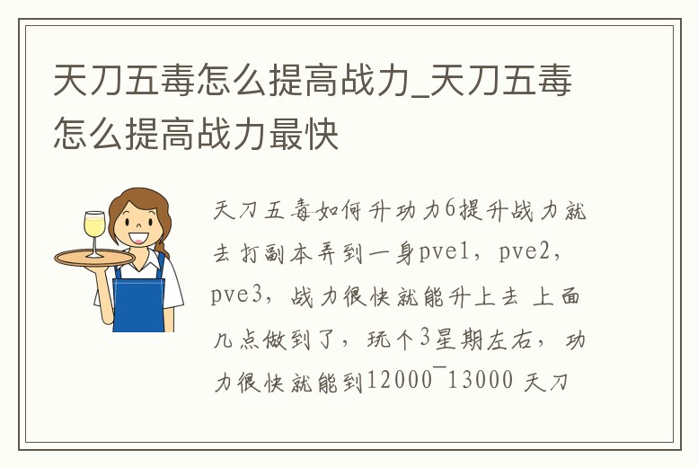 6提升戰力就去打副本弄到一身pve1,pve2,pve3,戰力很快就能升上去 上面幾點做到了,玩個3星期左右,功力很快就能到12000~13000 天刀我五毒都57級了怎么功力才2000多 你的裝備 見聞 試煉 都會加功力的,做主線也會給。