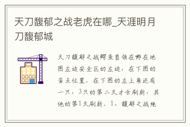 天刀馥郁之戰(zhàn)老虎在哪_天涯明月刀馥郁城