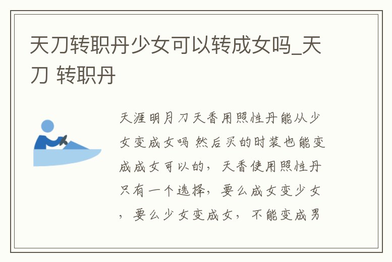天刀轉職丹少女可以轉成女嗎_天刀 轉職丹