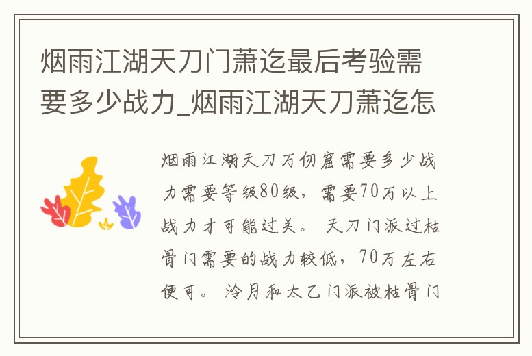 煙雨江湖天刀門蕭迄最后考驗需要多少戰力_煙雨江湖天刀蕭迄怎么打