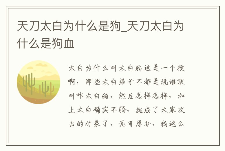 天刀太白為什么是狗_天刀太白為什么是狗血