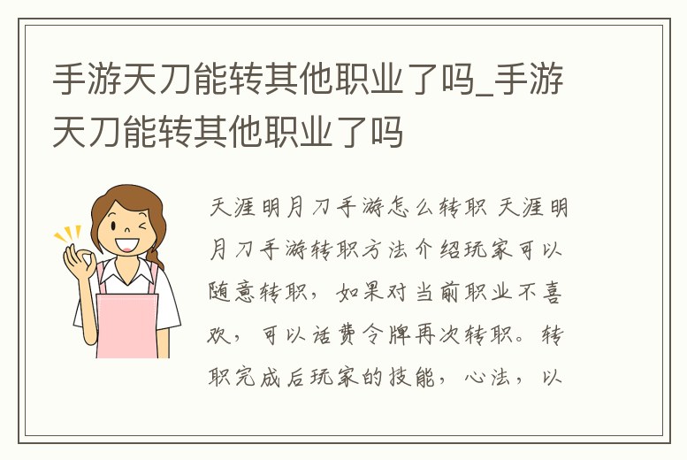 手游天刀能轉其他職業了嗎_手游天刀能轉其他職業了嗎