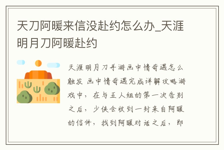 - 天刀阿暖來信沒赴約怎么辦_天涯明月刀阿暖赴約