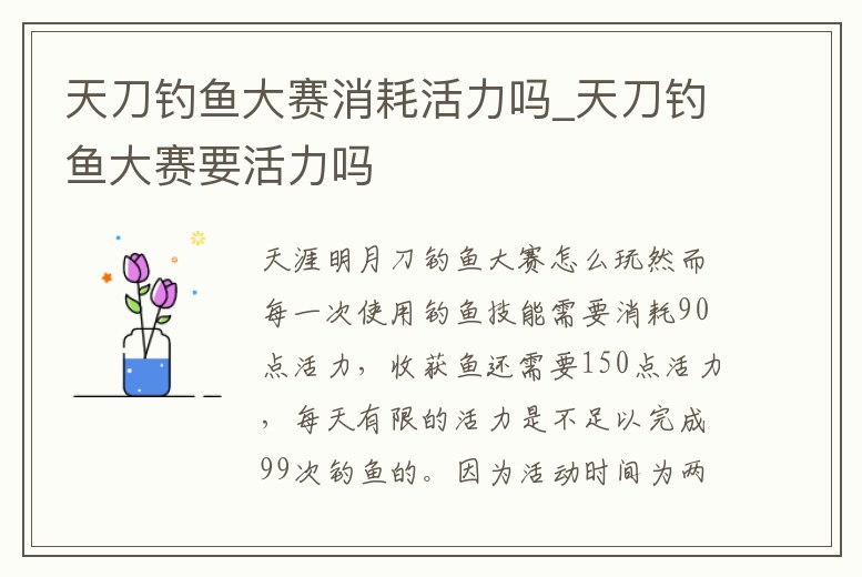 天刀釣魚大賽消耗活力嗎_天刀釣魚大賽要活力嗎